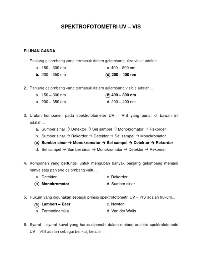 Pertanyaan dan jawaban tentang spektrofotometri. We did not find results for: Check spelling or type a new query. Maybe you would like to learn more about one of these?